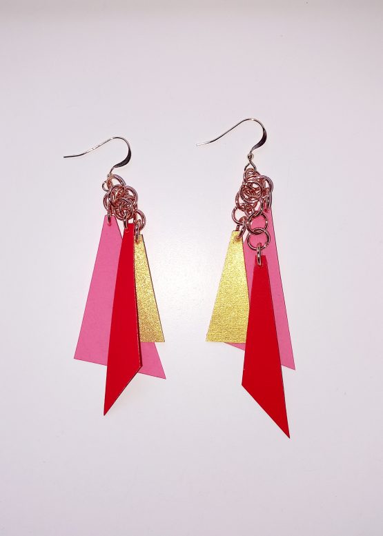 Stunning Silk Earring in Pink Gold and Red hanging on a 14kt Gold Hook.